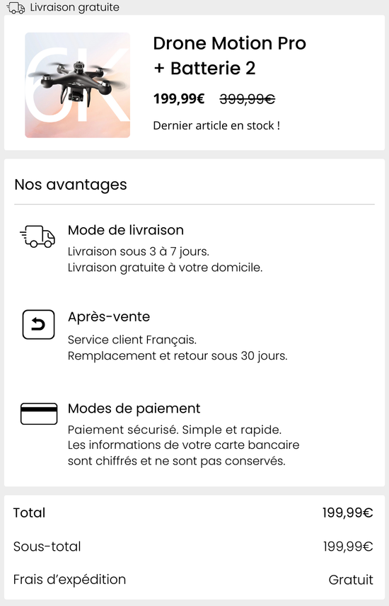 Votre panier : Drone Motion Pro